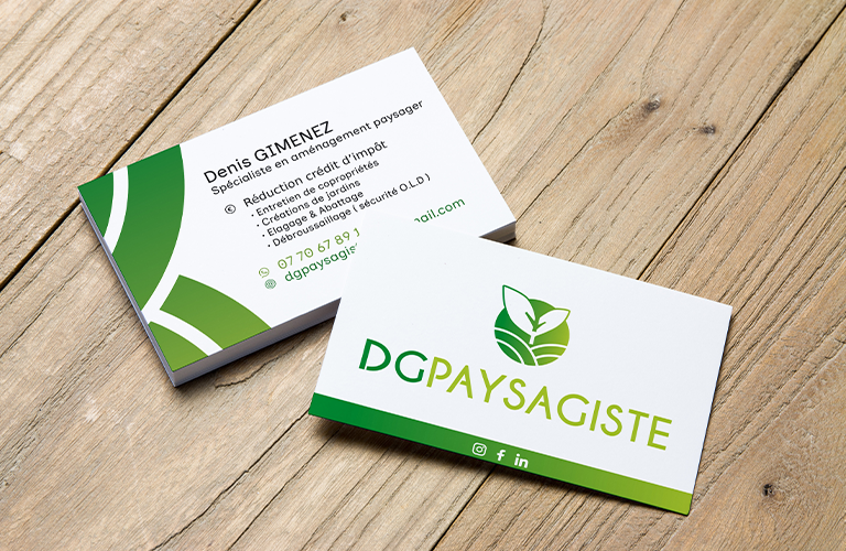 Les cartes de visite que j’ai créées pour DGPAYSAGISTE, offrent une première impression professionnelle et mémorable. J’ai conçu des cartes de visite qui reflètent l’esthétique et les valeurs de l’entreprise. Les informations essentielles telles que le nom, le titre, les coordonnées sont présentées de manière claire et facile à lire. De plus, j’ai veillé à ce que le design soit équilibré et attrayant, tout en restant fidèle à l’identité visuelle de DGPAYSAGISTE.