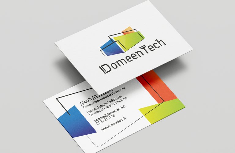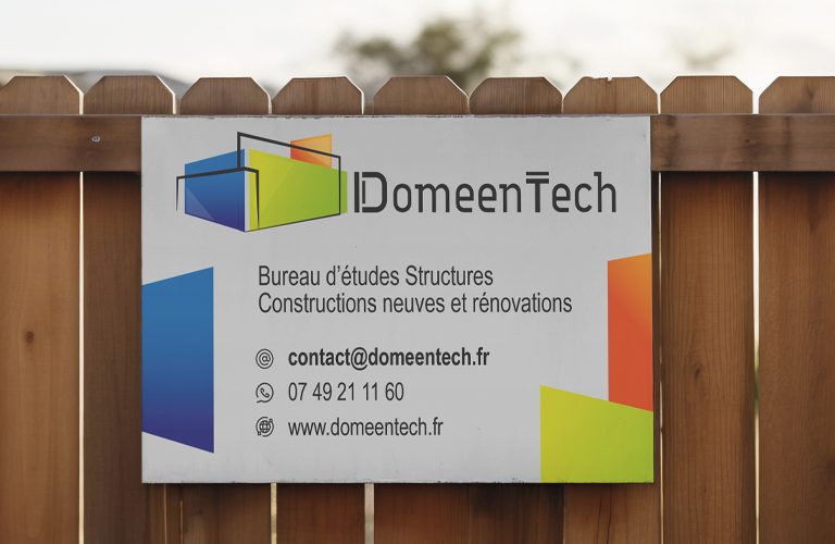La typographie du logo est délibérément travaillée pour transmettre la robustesse et la fiabilité du travail de DomeenTech. Les caractères sont épais, avec une largeur fixe, et dépourvus de serif, soulignant la précision et l’approche méthodique du bureau d’études.
