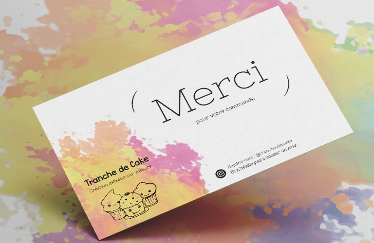 Cette carte reflète l’appréciation sincère de notre client envers ses clients et leur fidélité. En utilisant les mêmes couleurs et éléments graphiques que le logo, la carte de remerciement crée une expérience cohérente et mémorable pour ceux qui ont eu le plaisir de déguster ses délicieux gâteaux sur-mesure.
